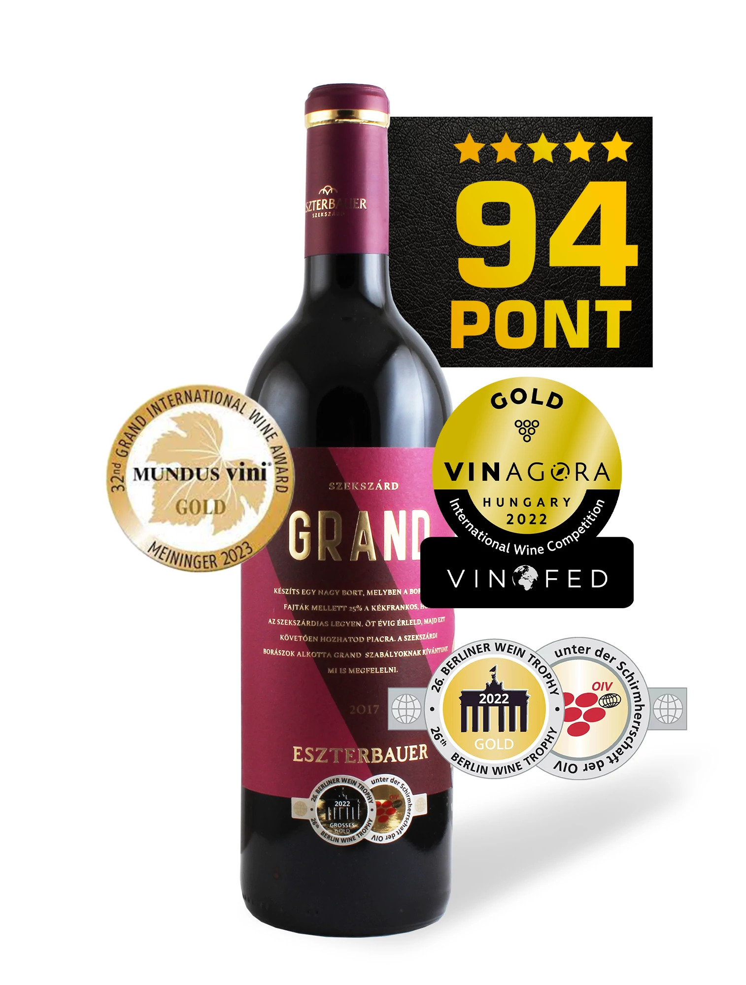 | Szőlőfajta | Cabernet Franc, Cabernet Sauvignon, Kékfrankos, Merlot |